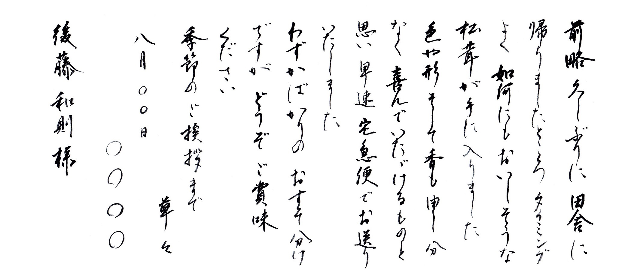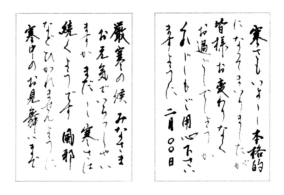 小筆で手紙(便箋・葉書・巻紙)・宛名書き・のし紙・賞状などの日常の書を練習します